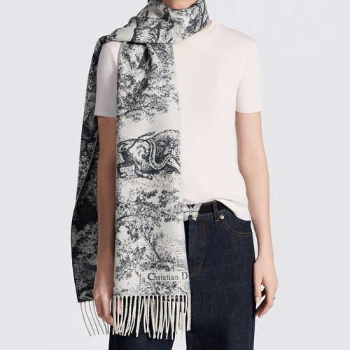 【服装】DIOR/迪奥23新款 男女通用海军蓝色羊绒印花徽标流苏边围巾41JOU215I159_C540