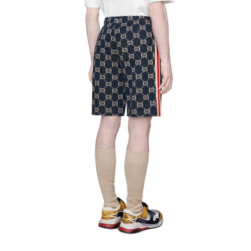 【包税】 GUCCI/古驰 22年秋冬新款 男士蓝色/象牙色纯棉老花提花短裤474632X9V054245
