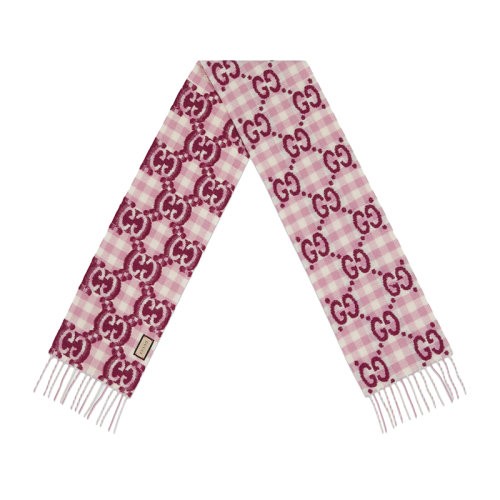 【包税】GUCCI/古驰 22年秋冬新款 儿童款女孩粉色/白色羊毛混纺格纹老花提花围巾6585014KAAL5878