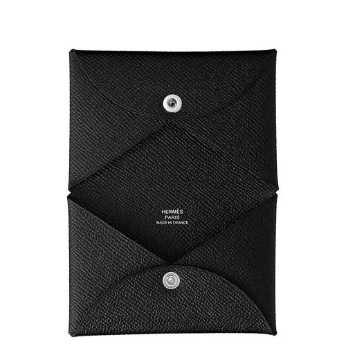 【包税】HERMES/爱马仕 Calvi系列 女士黑色小牛皮银按扣闭合卡片夹H044164CK89