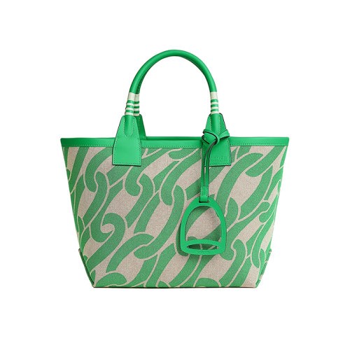 【包税】HERMES/爱马仕24新款 女士绿白交替帆布配皮马镫形手提包H084533CKAA