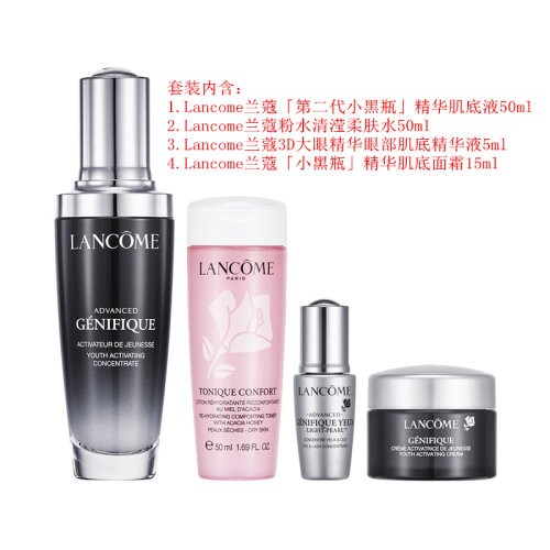 Lancome/兰蔻 限量套装 「小黑瓶」系列肌底液粉水大眼精华面霜4件套(护肤品-化妆品)