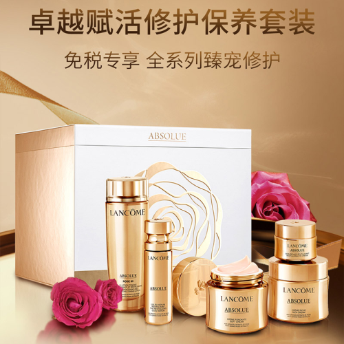 Lancome/兰蒄菁纯臻颜卓越赋活修护保养套组(菁纯美容液150ml,轻盈版乳霜60ml,滋润版乳霜60ml,精华30ml,眼霜20ml,包包)国内发货,镜子破损,介意者勿拍