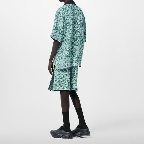 【服装】衣服/LV/路易威登 24新款 男士雾蓝色棉混纺绉纱老花图案衬衫1ABJBD
